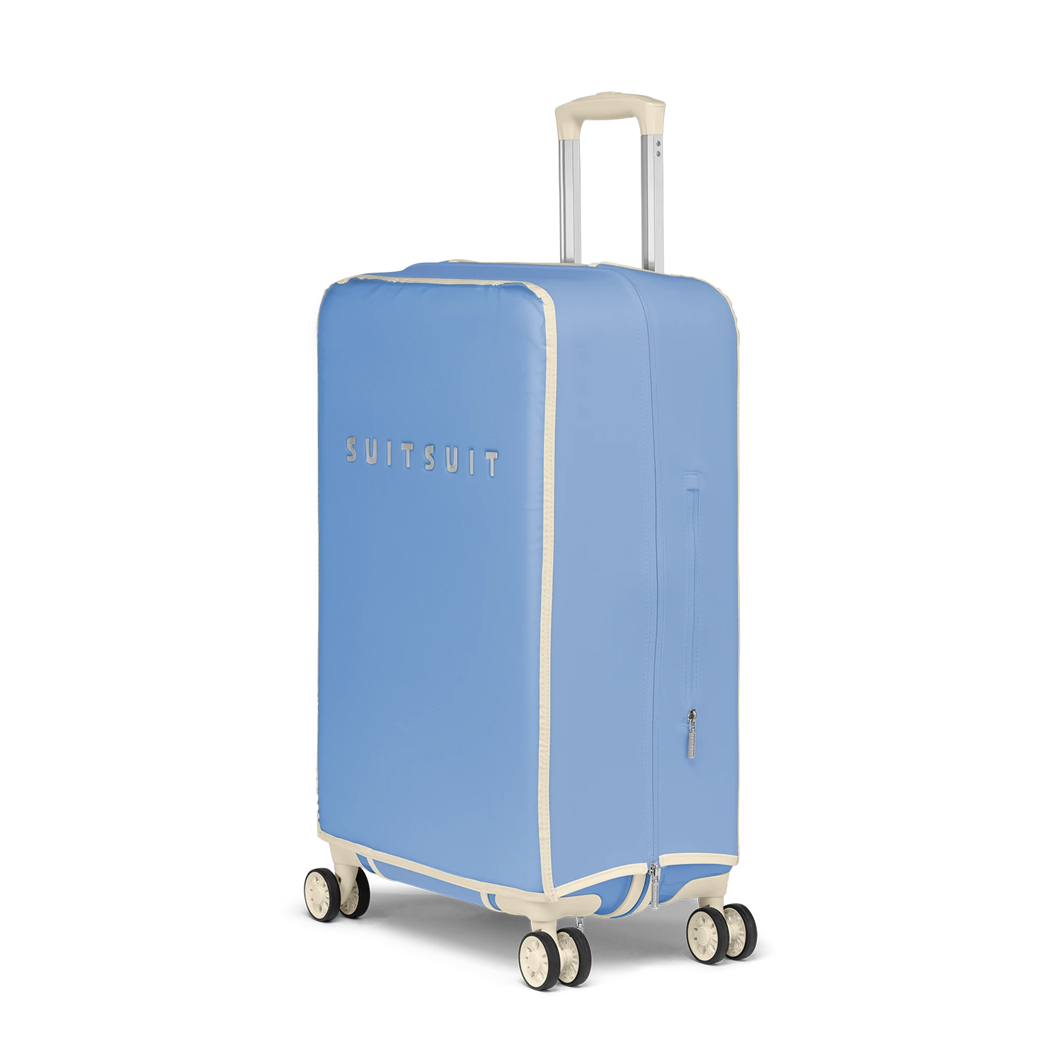 De Fabulous Fifties beschermhoes is dé perfecte oplossing voor het behouden van een schone en krasvrije koffer. Met de extra beschermlaag houd je je SUITSUIT koffer zo lang mogelijk mooi. De voor- en achterzijde van de hoes zijn mat transparant PVC, zodat de kleur van je Fabulous Fifties koffer goed zichtbaar blijft. De iconic kleur Alaska Blue vind je terug aan de boven- en zijkanten van de beschermhoes.