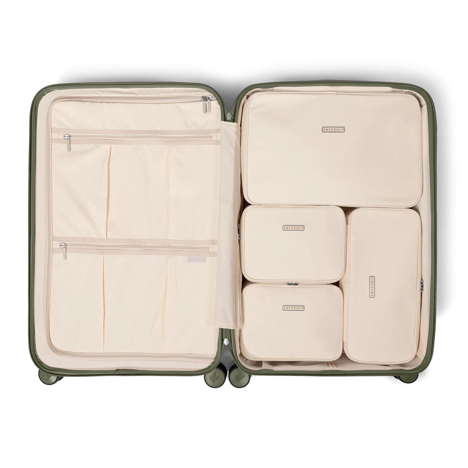 Deze Natura packing cube set is speciaal samengesteld voor onze grote (76 cm) koffers. De set bestaat uit vier verschillende typen organizers die precies in je reiskoffer passen. De set sluit naadloos op elkaar aan zodat alle ruimte in je koffer optimaal benut wordt. De Macadamia kleur matcht met de binnenkant van de Natura koffers. Zo ben je goed voorbereid voor je vakantie!